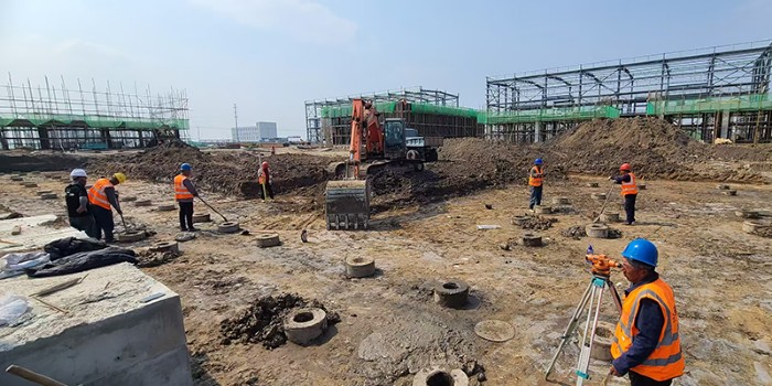 建筑工程公司為確保項(xiàng)目施工進(jìn)度,節(jié)前召開(kāi)專題會(huì)議,對(duì)“五一”期間的施工任務(wù)進(jìn)行詳細(xì)安排,制定了科學(xué)合理的施工計(jì)劃。鳴歧項(xiàng)目為了提高施工進(jìn)度,利用晚上時(shí)間進(jìn)土,晝夜奮戰(zhàn),保障了各個(gè)施工單體及場(chǎng)地基礎(chǔ)回填用土需要,假期期間進(jìn)土1萬(wàn)余方,為后續(xù)施工進(jìn)度奠定了堅(jiān)實(shí)基礎(chǔ)。為確保長(zhǎng)蘆鹽業(yè)公司泵站工程順利推進(jìn),工程技術(shù)部調(diào)配技術(shù)骨干班組,開(kāi)啟了全天候奮戰(zhàn)模式。截至目前,鳴歧項(xiàng)目一、二車間基礎(chǔ)墻砌筑、圈梁澆筑已完成;港城填方項(xiàng)目已完成噴砂區(qū)填方并通過(guò)驗(yàn)收,其他項(xiàng)目正在加快推進(jìn)中。
