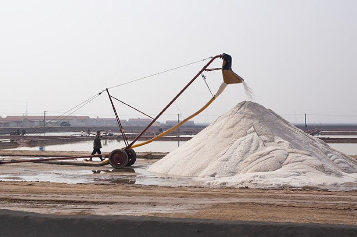 鹽田中,鹵水潺潺泛著浪花,鹽粒滾滾聚攏成山,鹽晶剔透閃光芒,機(jī)器轟鳴奮力前行,鹽工扶舵細(xì)操作,勾畫(huà)出一幅豐收繁忙的景象。