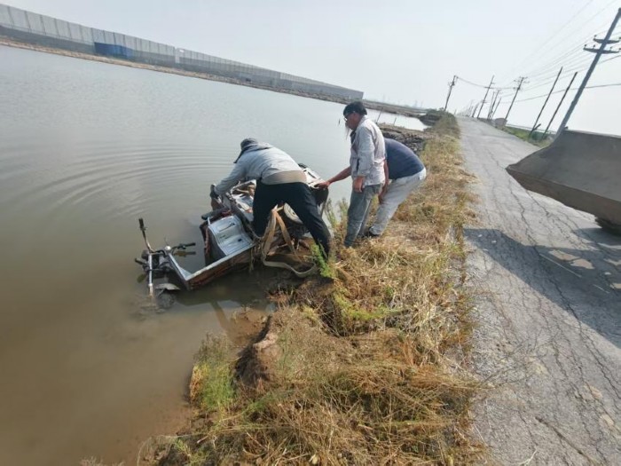上午10時左右,海豐鎮(zhèn)村民駕駛?cè)嗆囃窘?jīng)建筑工程公司東側(cè)路段時,因避讓車輛造成三輪車失控,連人帶車沖入路北的水中。三輪車落水后迅速傾斜下沉,情況危急,村民大聲呼救。